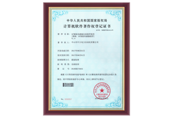 SF智能傳感器儀表程序軟件證書